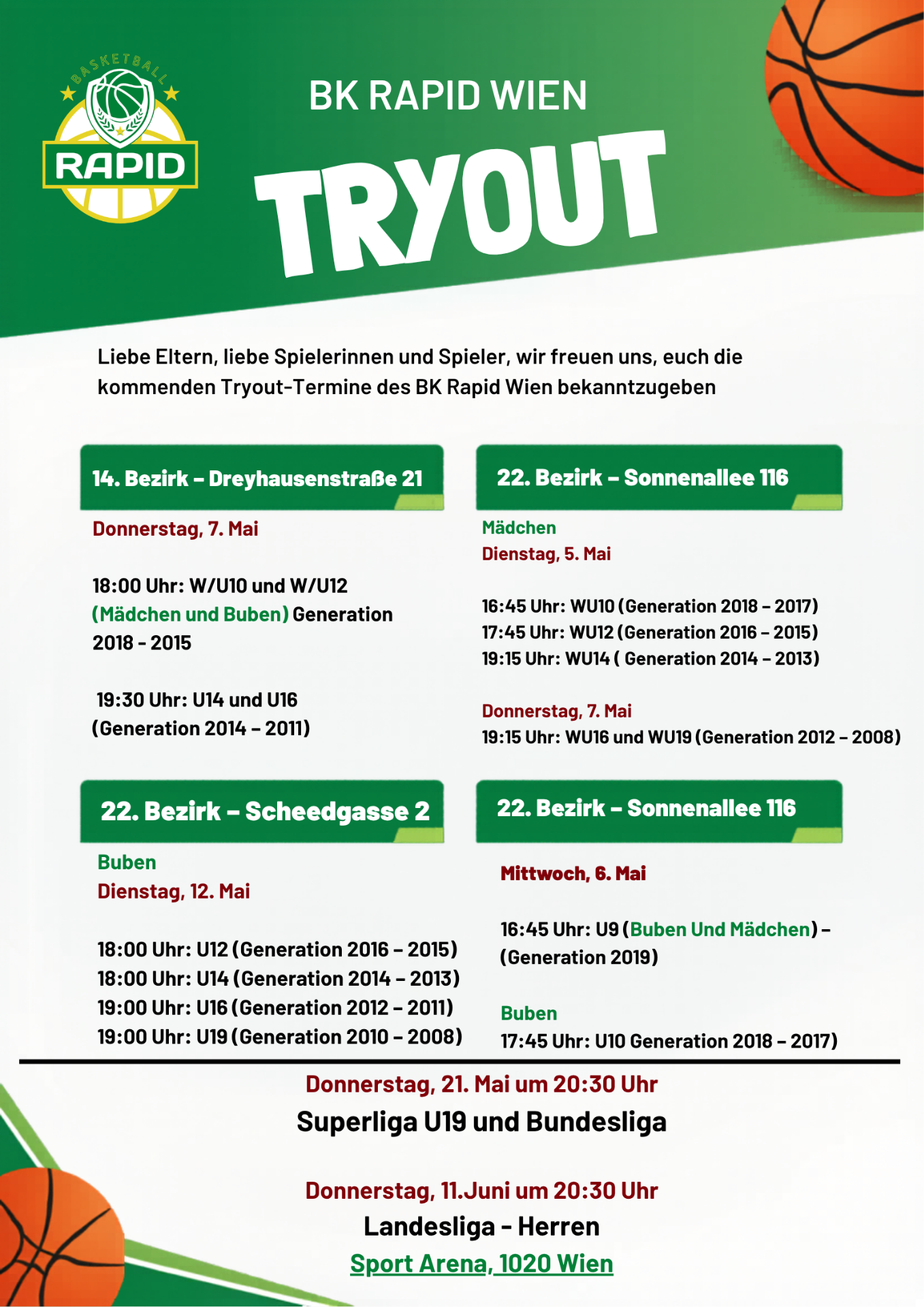 Tryouts des BK Rapid Wien – Saison 2026/2027